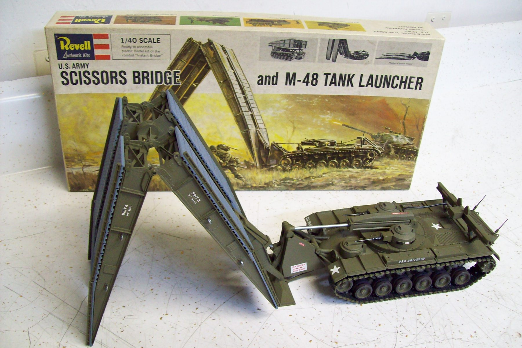 My latest nostalgia build, the 1960 Revell release of the M-48 AVLB and Scissors bridge in 1/40th scale. I did try to build this model back in the early 60's, but my modelling skills were not up to finishing it back then!!!!! Glad this one came out looking better than the one I tried to build back then.
