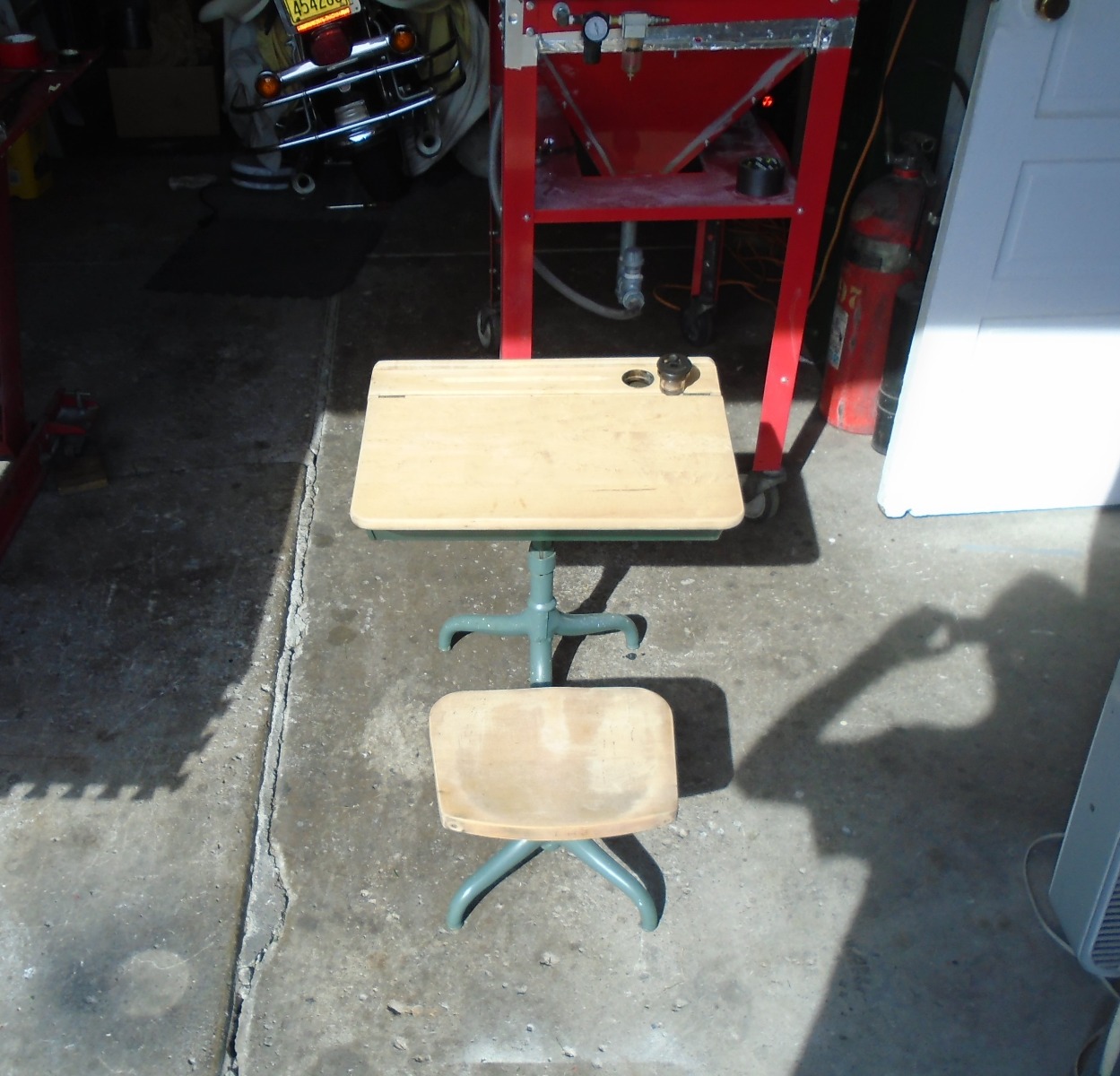 Started sanding an old school desk, found at the curb on garbage night, Just bought a matching ink well on ebay.
