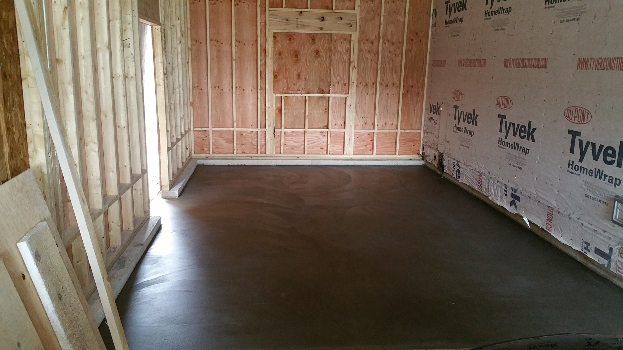 Floor poured and smoothed yesterday.