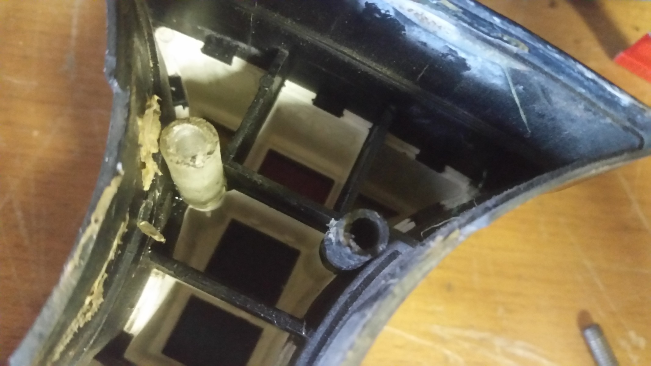 Hey everyone! Have any of you had the situation where there's little things wrong with your bike that you've ignored or just lived with for years then one random day you just say "I'm gonna fix this" ?! I've got two examples, my aftermarket seat didn't have any kind of catch for the sprung seat stay then one day I thought, that stay looks kind of H.T lead size so I raided my plastic clips box and pulled out an old Audi 80 lead clip ,and now I have an adjustable seat! And yesterday I decided to look at my loose warning light cluster that's always rested on the handlebar clamp, it's left hand bolt just went round and round, once I took it to bits I found one of its black plastic tapped tubes missing! So I took an inch off an old electric screwdriver, tapped it and glued it in place, now finally the warning lights are solid and sit right!!