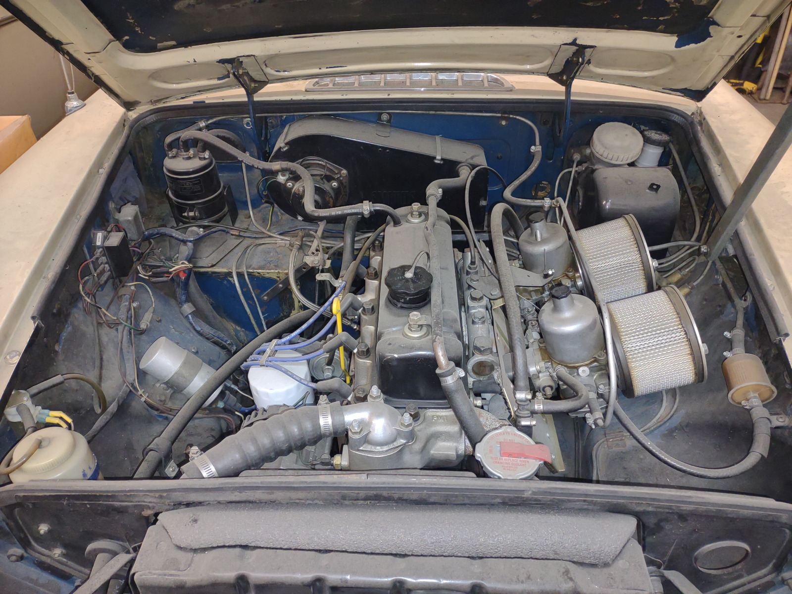 Here's the dusty motor in the 72', it is stock with a big valve aluminum head. It still runs great and I need to get it back on the road.