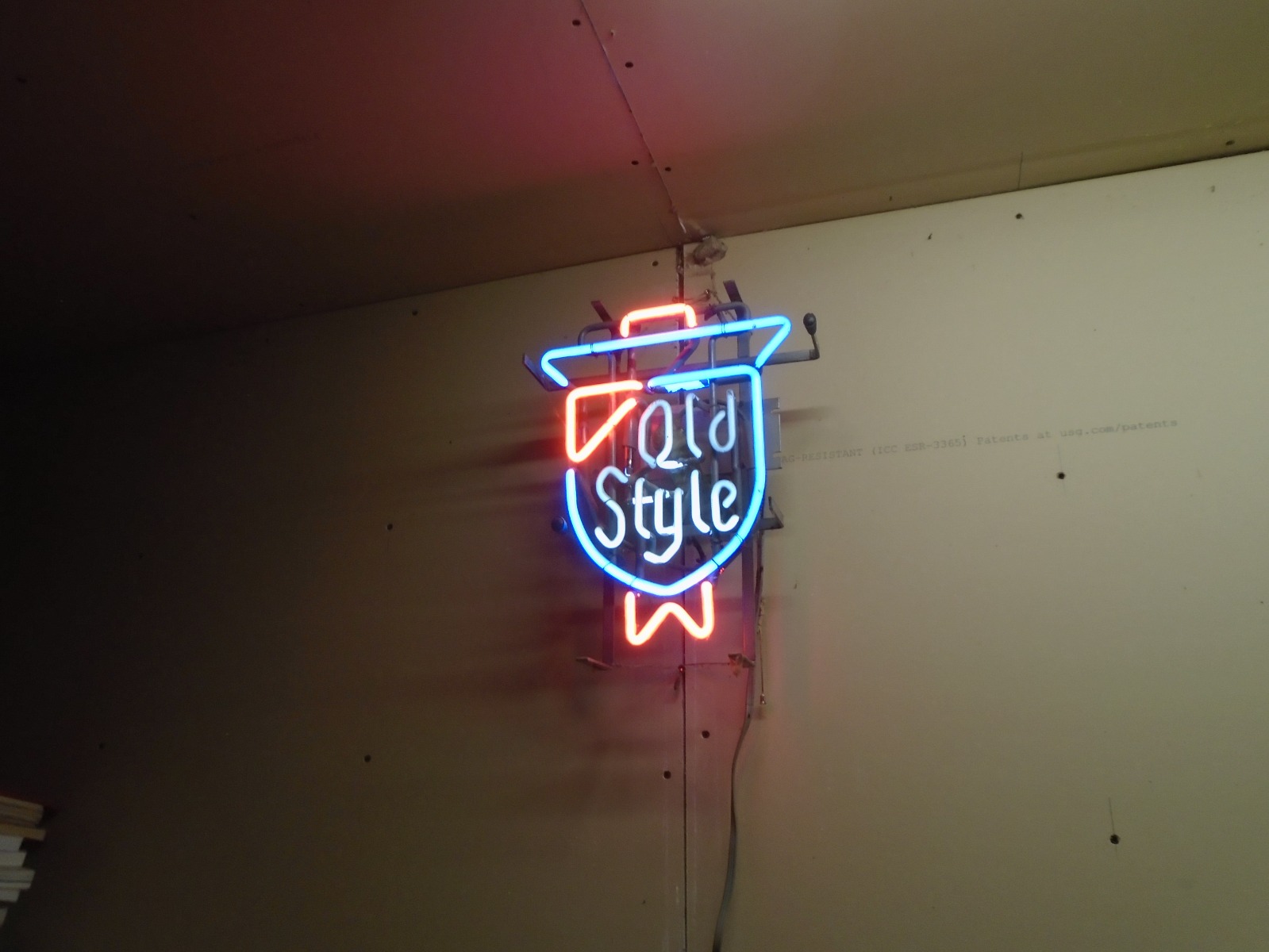 Primary garage where the "stuff happens". Don't have anything dangling from the wall except this ole sign. I see you have a Miller one, gotta go neon with style, Old Style, ha. I do have a spider riddled wall of old shipping boxes though. Great to sort thru when one needs "just the right size".