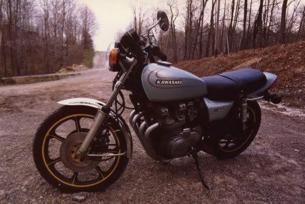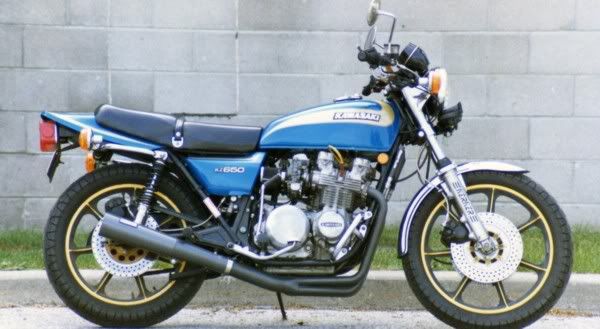 When I had the bike repainted Candy Apple Blue in the 1980's, I had the gold stripes follow the original KZ650C2 stripes.