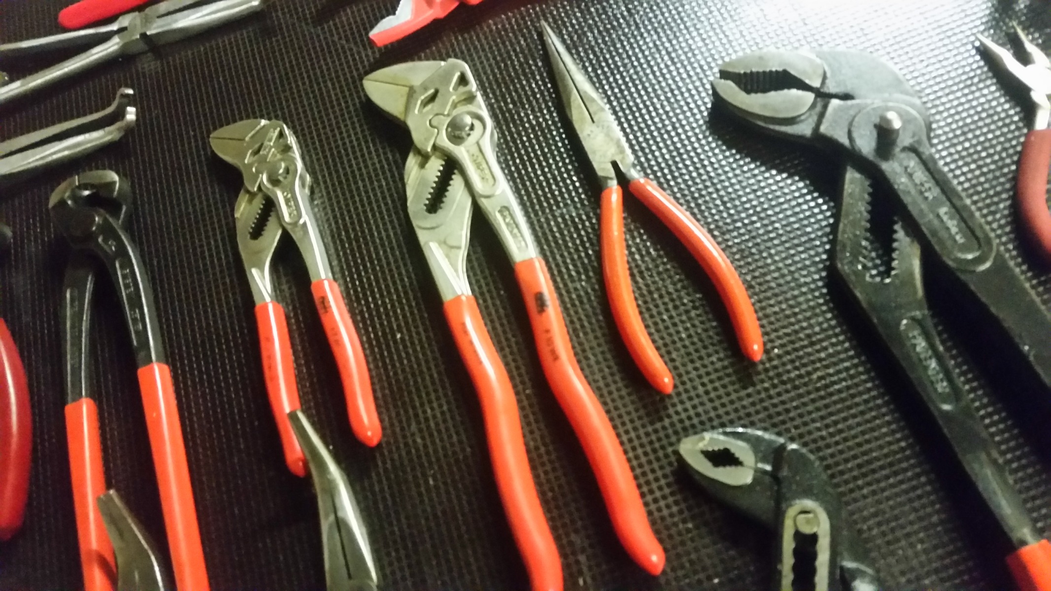 Just a quick update...I spent a while earlier organizing and cleaning up some tools and here's my knipex, mac and rothenberger plier grip and wrench collection so far oh and one set of blue point snap ring pliers ;)