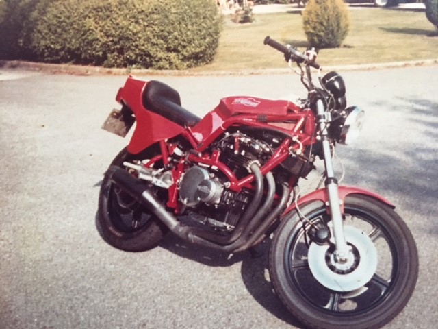 I tore it down to frame and engine after a scrub and pressure wash. Then in no particular order- with help from close friends Jeff & Rob Cleaned out & sealed fuel tank, rebuilt carbs & removed oil pan to ensure that take-up screen wasn't clogged. Adjusted valves repacked wheel bearings and fitted new tires and tubes. NOS 1 pc. cush drive rubber, rebuilt brake callipers & Installed master cylinder/lever from a 2009 650 Ninja to get brake light switch on the lever instead or the inline hydraulic switch.