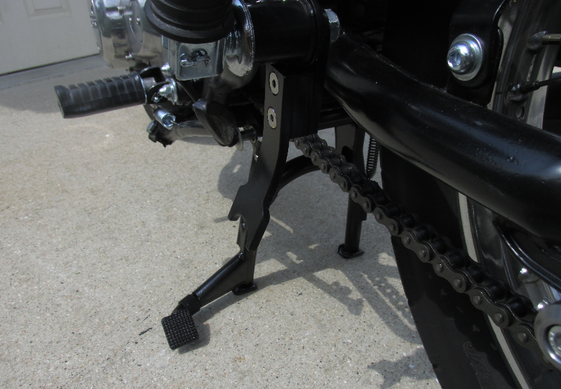 > -Modified rear fender to move it up and forward about 2", shortened turn signal stalks & added smaller K & S marker lights and I also shortened OEM front fender. Got rid of "3rd leg" on center stand and made custom stop for it. Replaced rear shocks with Ikon Basix plus LOTS of little details.