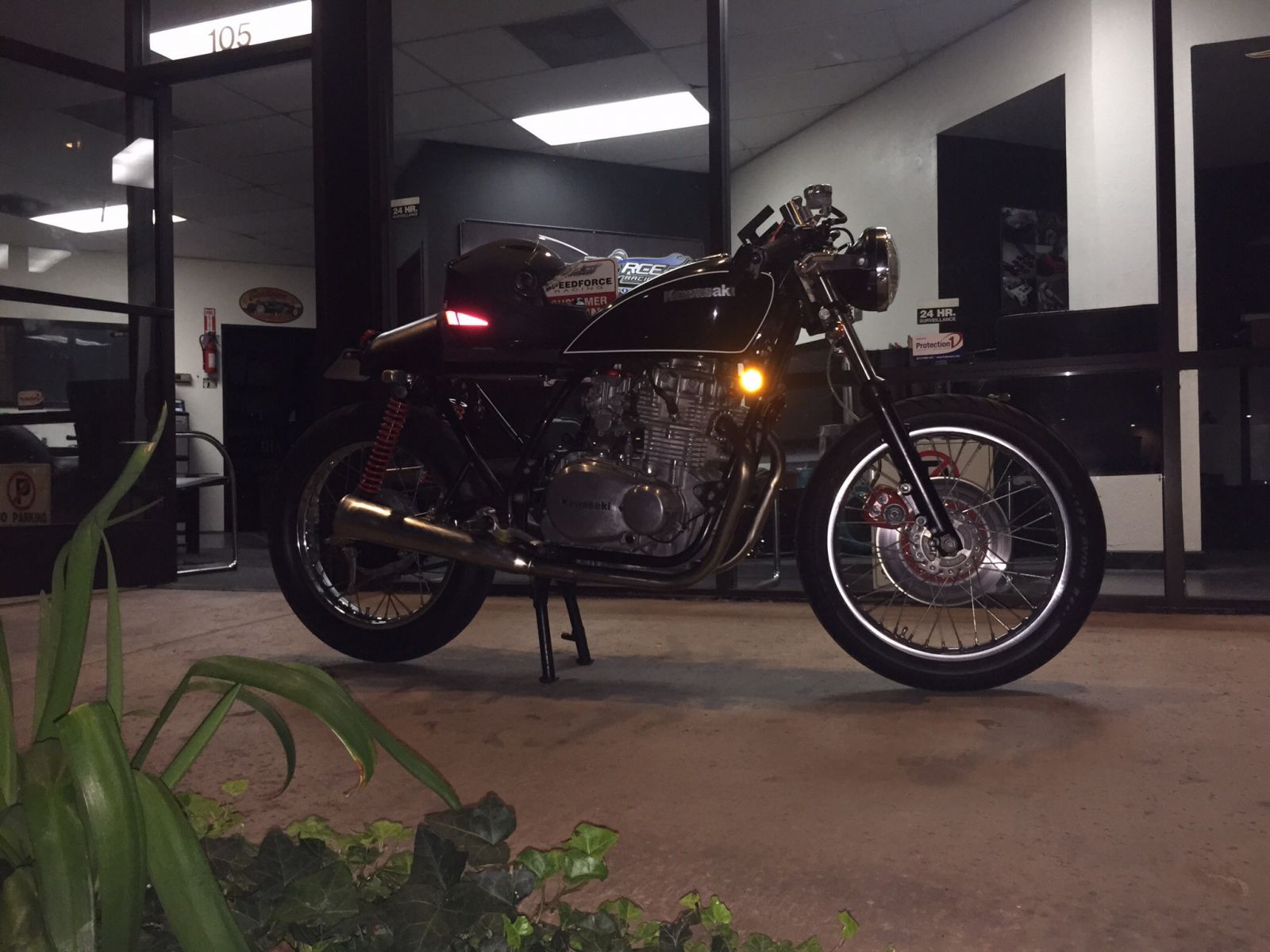 Other than that, I have no regrets of how much I've spent yet alone the time I invested into this project, my very first motorcycle build, I'm lovin my KZ and the thumbs up I get on the freeway and compliments at stops. Best part is that I'm not even done with the bike yet!? I think my red springs are hypnotizing? lol..Couple nights ago decided to take a super scenic route home. Half way through, 2 crotch rockets and a converted DRZ zoom pass me. I was 10 over the posted limit. I'm sure 2 of the 3 riders were novices, since I was able to safely stay behind one of the riders R6. The supermoto must've been the experienced rider cause he was parked in the shopping center lot eating a burrito. they didn't believe me when I said it was a 440.