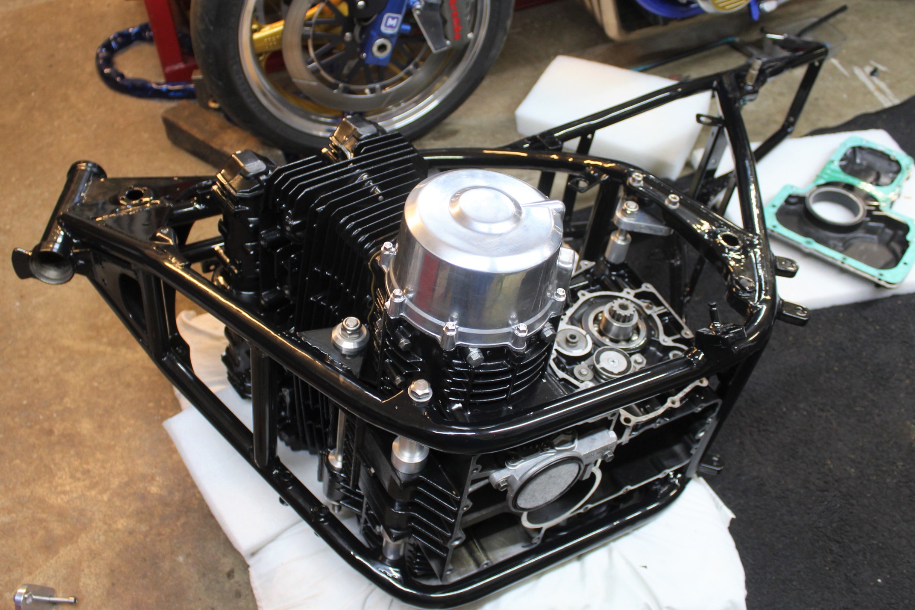 Stripped the wheels, forks, swingarm, engine casings, matt blacked the rusty downpipes and spent too much money on the carbs