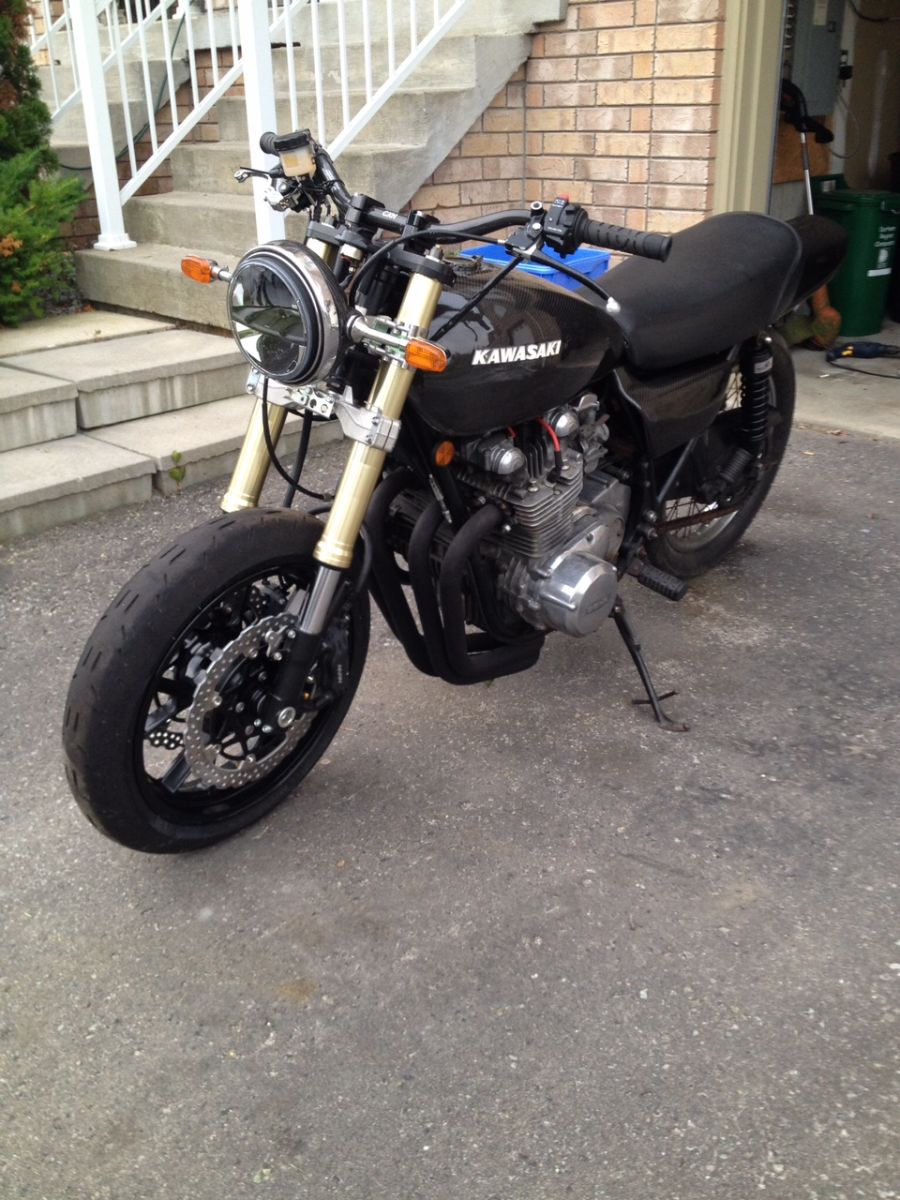 I picked this 78 kz650d off of my room mate about 2 weeks ago. He was trying to do a bobber style build with it and honestly he really didn't know what he was doing so I have my work cut out for me! I personally don't like the bobber style and I have always wanted to do a cafe ish style build. So I have pretty much undid everything that he has done and started to build it in my own style.