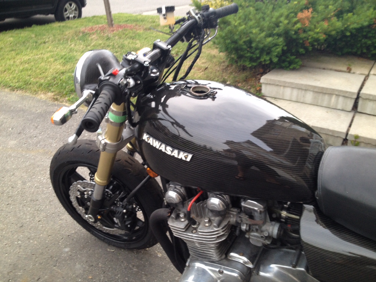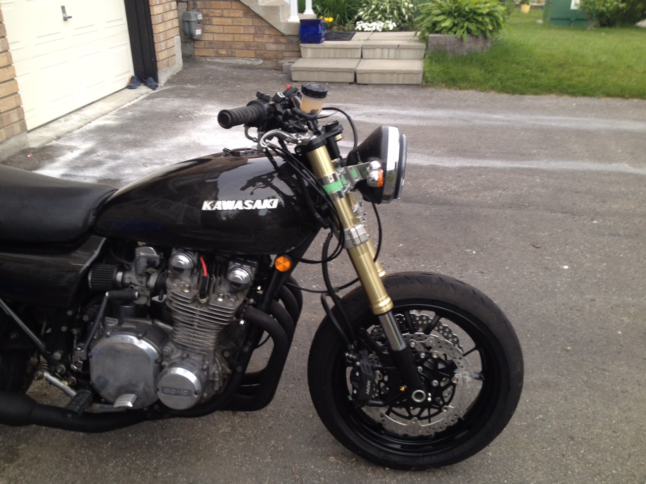 I still need to drill out the top triple because the kz stem is to big to fit thru the hole of the gsxr's upper triple. I will do this tomorrow I think.