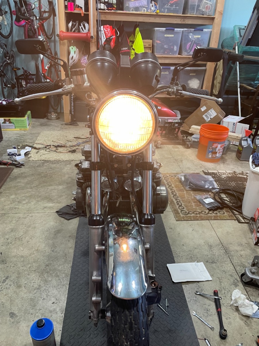 I've been working on putting everything back together since then. Ordered the motogadget blue from ebay, and the Revival Signature mo.unit Deluxe wiring kit ( this one ), dyna-s electronic ignition, and some new handlebar button controls. I finally got everything wired up and working last week. Started putting covers back on.Getting closer to getting her out on the road.