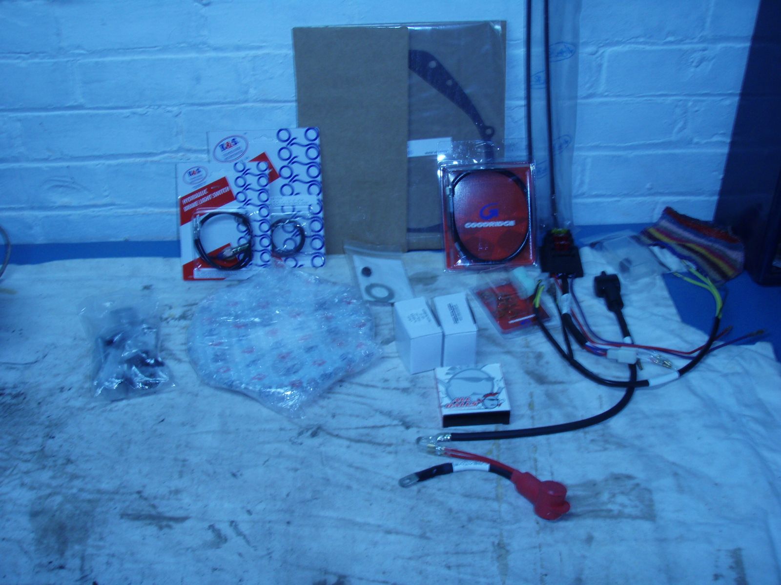 Some odds and ends from Z1, and CWS in Ohio. SS Rear brake lines, some new wiring goodies, and an assortment of grommets, seals and other bits which were either really grotty and beyond restoration of just fell apart when removed.
