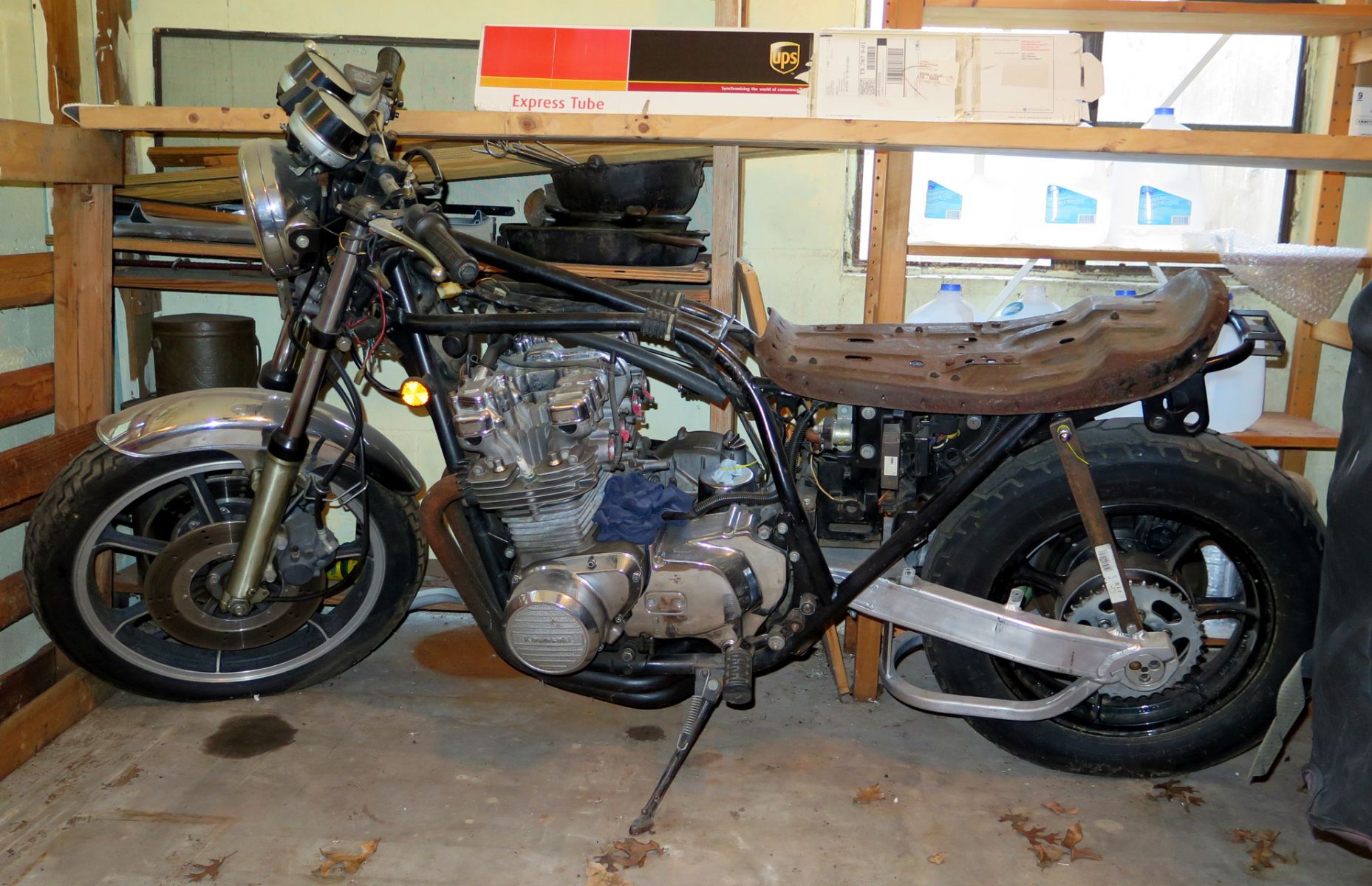 I figure that since the frame was already sent off to the scrap yard, I can pretty much do anything I want to it. Normally I wouldn't be able to bring myself to hack up a vintage machine, but this is my free pass. I just need to find the time. Just as soon as I finish the Z1-R that I've broken down into nuts and bolts... and then clean up my other two Z1-Rs... and get that '95 GPZ1100 back together. So it's going to be a long while before the LTD gets any attention.