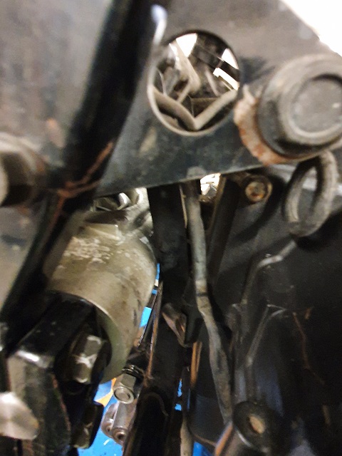 Then the swing arm can now be wiggled in to the frame and I could hang it up on the original swing bolt.