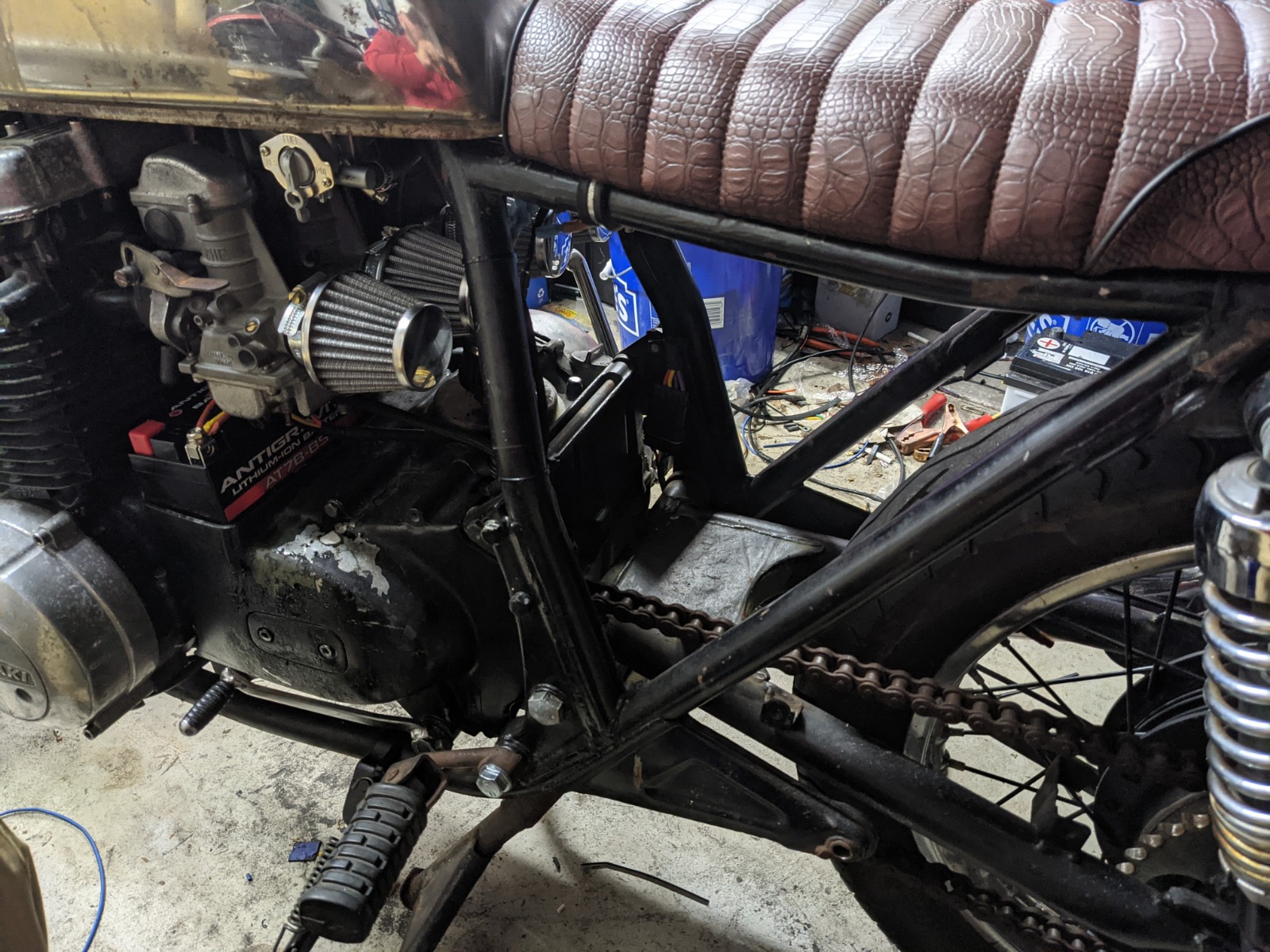 Also set the GS swingarm in for the first time. There is a little interference with the battery box/brake stay, but nothing a hacksaw won't fix.