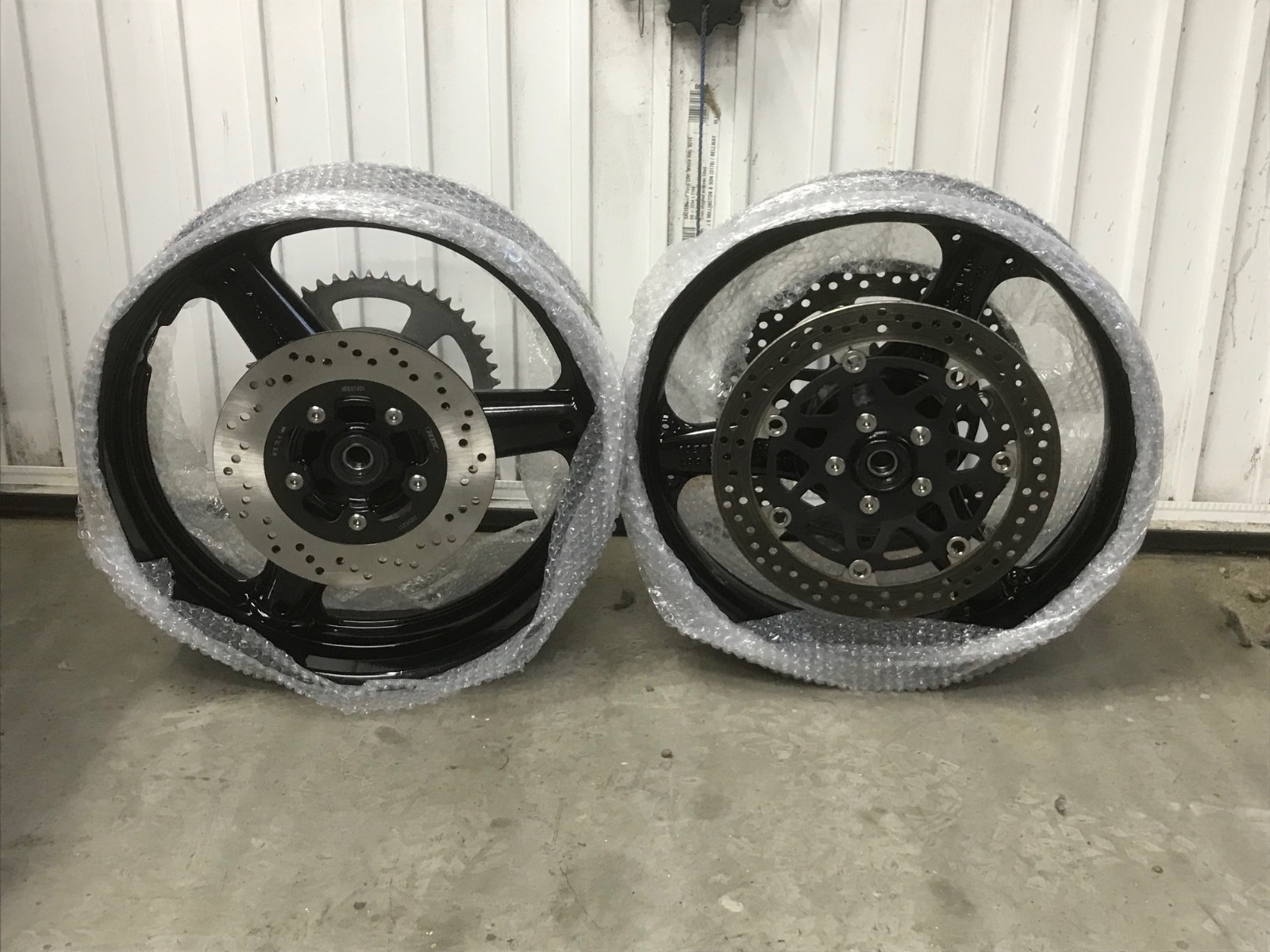 Still moving forward, I have removed the gold anodising from the front disc centres and painted with "high temp" black. Wheels are now fully assembled ready for new shoes on Saturday (Pirelli Diablo Rosso's) will still need to remove the back wheel again when the motor is done (schoolboy error, I forgot to measure how much I need to remove from the sprocket carrier to align to chain before disassembly)