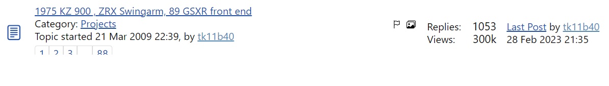 21 Oct 2024 00:48The bike is a stunner that's for sure, I suspect the swingarm and front end reference in the title makes it a firm favorite in the "search bar"