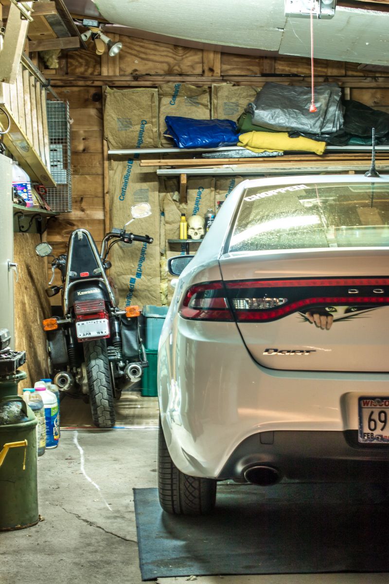 The thought had crossed my mind, but the battery access is easier this way, rather not work between the bike and the wall. Plan on removing the battery and keep it inside until taking it out and hooking it up on weekends for weekly starting.