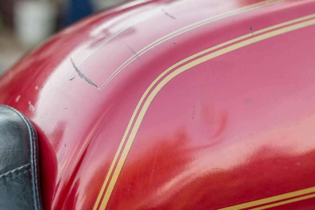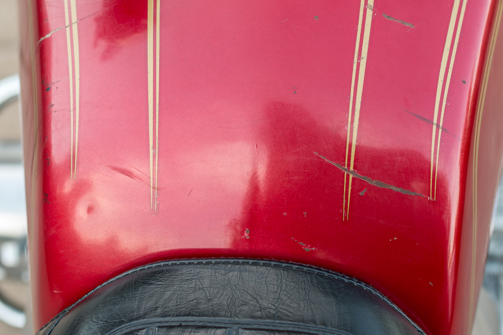 As you can see, the tank has suffered from the last owner being a moron and mounting the bike with the leg over the tank instead of over the seat.
