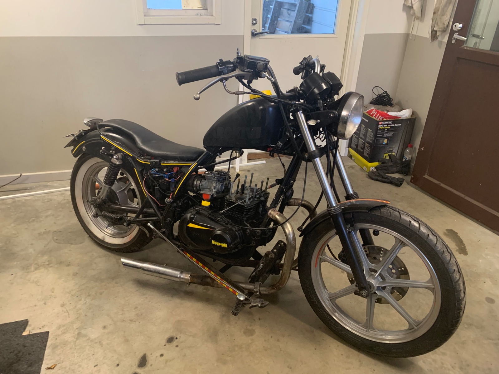 I recently bought my self a KZ440 ltd to build a cafe racer. The bike came with some bent exhaust valves, now I have got the engine running and took the bike a part to start modifying the frame. I might do post about the build but for now I will just post some pictures here of the progress I have done.