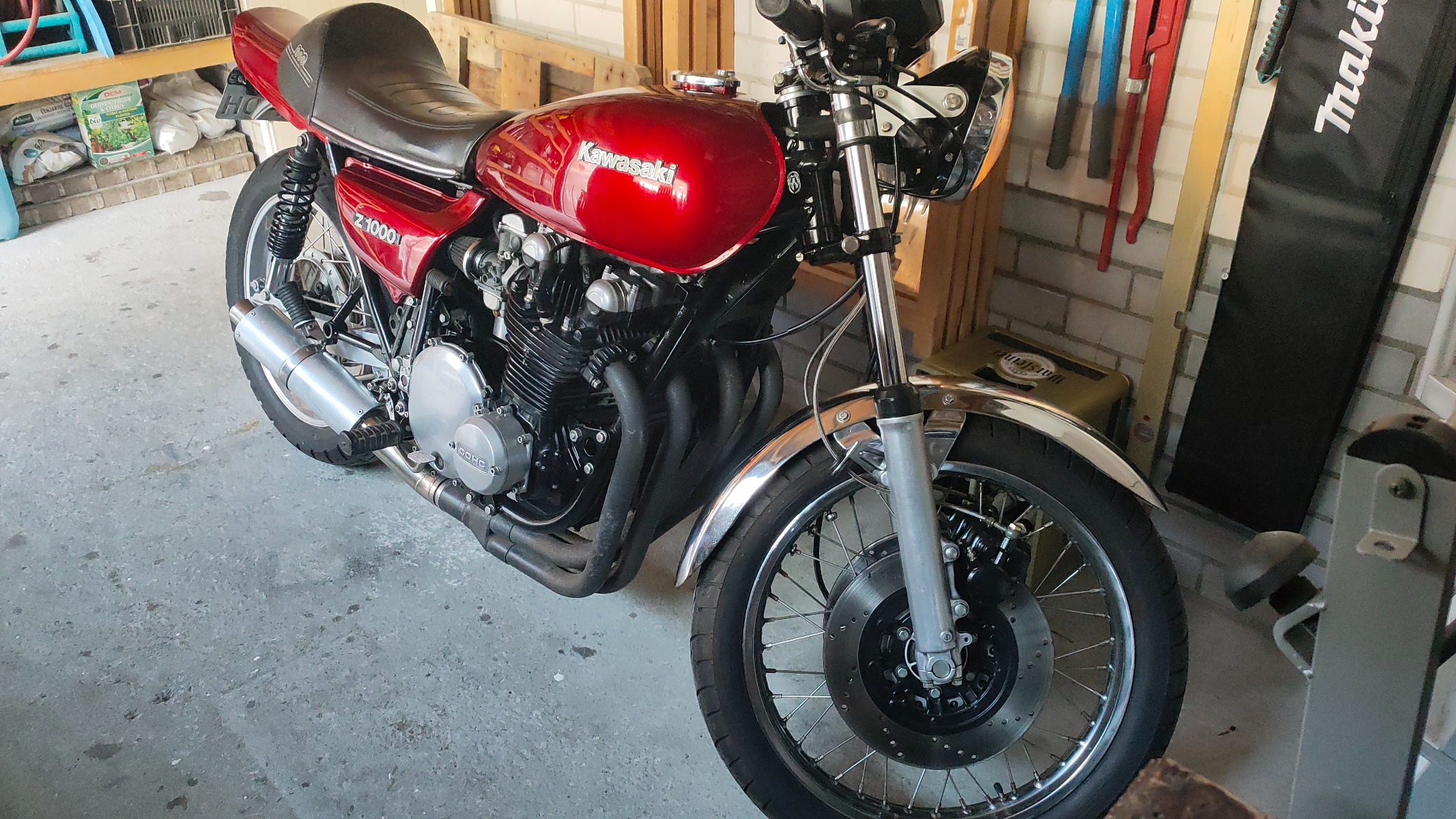 I have been restauring old Zundapps and Puch mopeds in the past, and got my motorcycle driver's license about 5 years ago and first bought a Honda VFR800X crossrunner with V-tec. Lovely bike but for the two of us back then it was a bit to small. So after some search I got myself a Triumph Tiger Explorer 1200 from 2015, with around 14k on it. 3 cases on it, cruisecontrol and every option you could imagine. But shortly after buying it my wife decided that she did want a baby (12 years before she wasn't sure about that). Knowing we wouldn't be going on trip's together, and me really missing the old stuff, I sold the Triumph and purchased myself a '80 Kawa Z1000 (and I think it's a late '78 model). It has had some mods already, and I like the looks. Bought it to be in a proper condition, but soon figured out that it wasn't. Ignition is busted, carbs are not that good too. Won't go in to neutral under 10mph, and when the engine is up to running temp it starts to struggle on high rpm's on full throttle. A bit of black smoke comes out of the exhaust and it just sucks. Will probably be the cilinders or valve seals or something.
