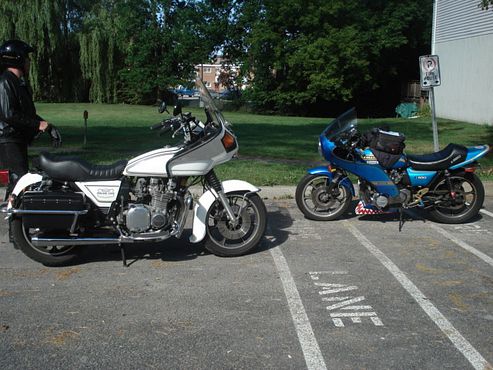 1978 KZ650 C2, 130K kms, Delkevic ex, EI, CVK32, PMC easy clutch, ATK fork brace, steering damper, braced swingarm, ZRX shocks, 18" Z1R front wheel.