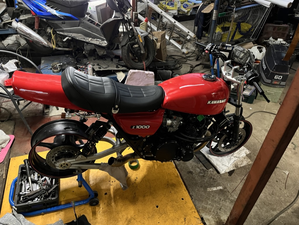 Currently working on restoring a '77 KZ1000A1 with some modern bits and a pretty extensive engine job, the goal is to have her up and running by summer 2024.