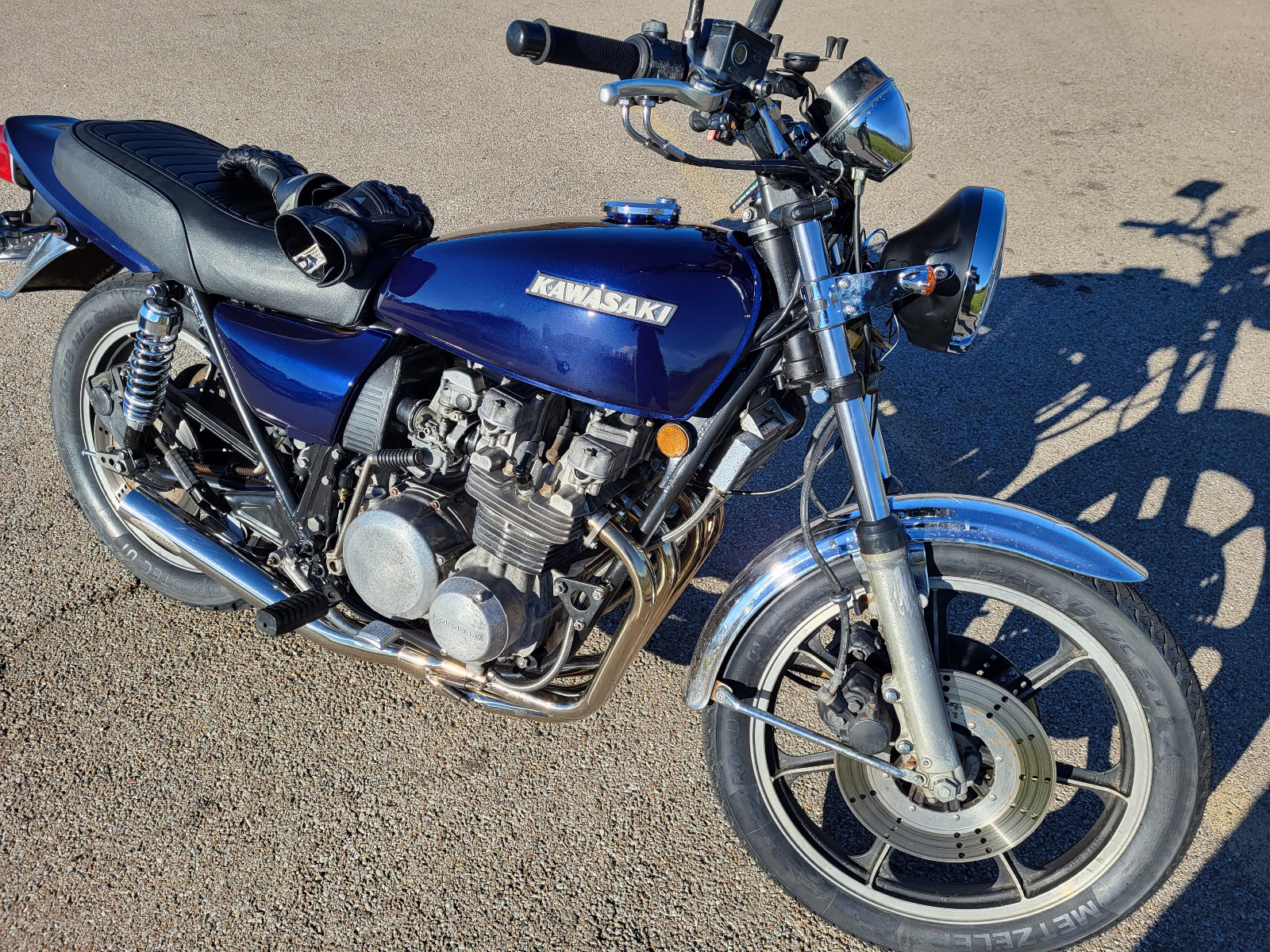1978 KZ650 C2, 130K kms, Delkevic ex, EI, CVK32, PMC easy clutch, ATK fork brace, steering damper, braced swingarm, ZRX shocks, 18" Z1R front wheel.