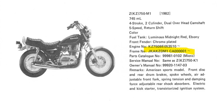 Assuming it should be JKAKZDM1XCA006888, then it's probably a 1982 KZ750-M1 CSR Twin.