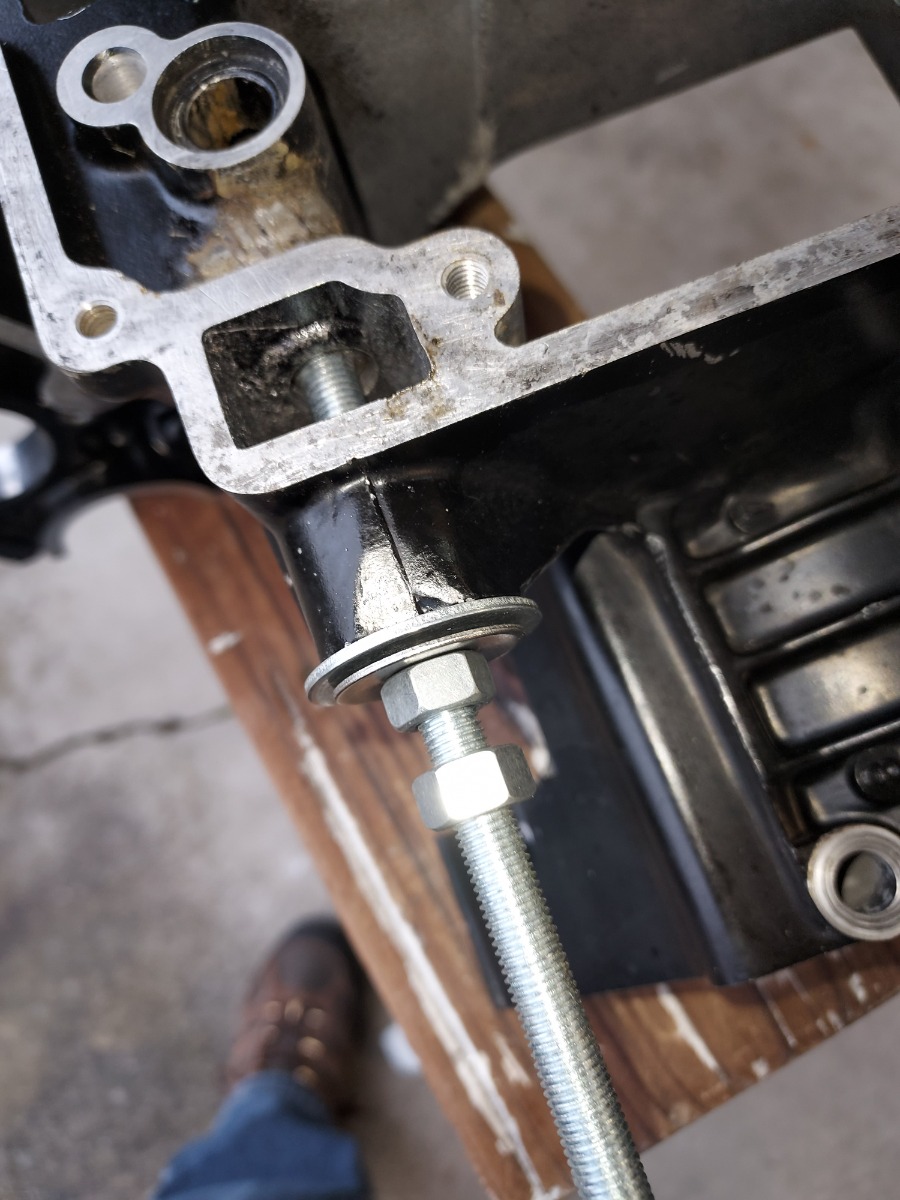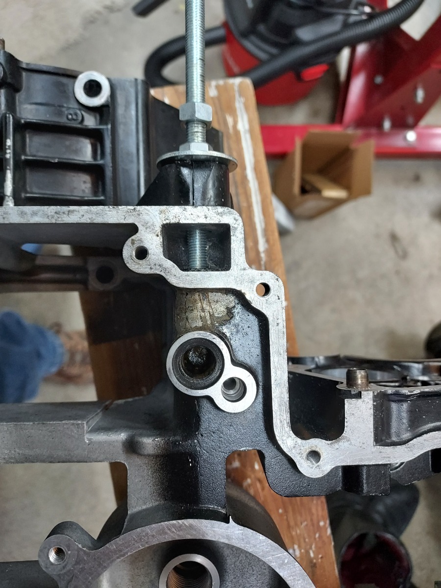 20 Apr 2024 12:57Sorry for the delay in responding to your question. You were correct, the plug is a 12mm diameter. What I didn't expect was that were two plugs; one steel to plug the outer part of the hole, and an aluminum one towards the interior. The aluminum one is the one you can see in my earlier pictures that has the notch machined from it when they cross-drilled for the passage from the oil pump. When I drilled for the tap in the steel plug, the bit passed through the steel, into a soft material, then bit into the aluminum plug for a few revolutions. I decided not to attempt further drilling as it was evident I had more than enough aluminum plug material left in the hole to do the job. Super-cleaned everything with brake cleaner after I drew the steel plug back into place. Drifted/tapped the aluminum plug back past the oil passage hole for the pump. Introduced high temp silicone through the threaded hole in the steel plug, then 'loctited' a piece of the threaded rod into the hole. Fairly confident there will not be a problem going forward.Glad you got it. Thats interesting on the plug diameter. The engine I had was a KZ900 I believe maybe a late Z1. The plug was 12mm steel and was the only one. They must have bored it 10mm then 12mm and plugged it. What year were you working on?