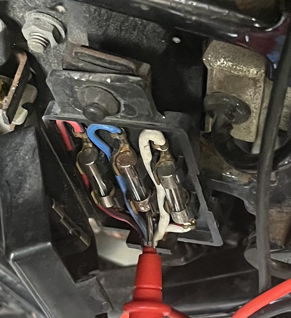 Move your red probe to the fuse box