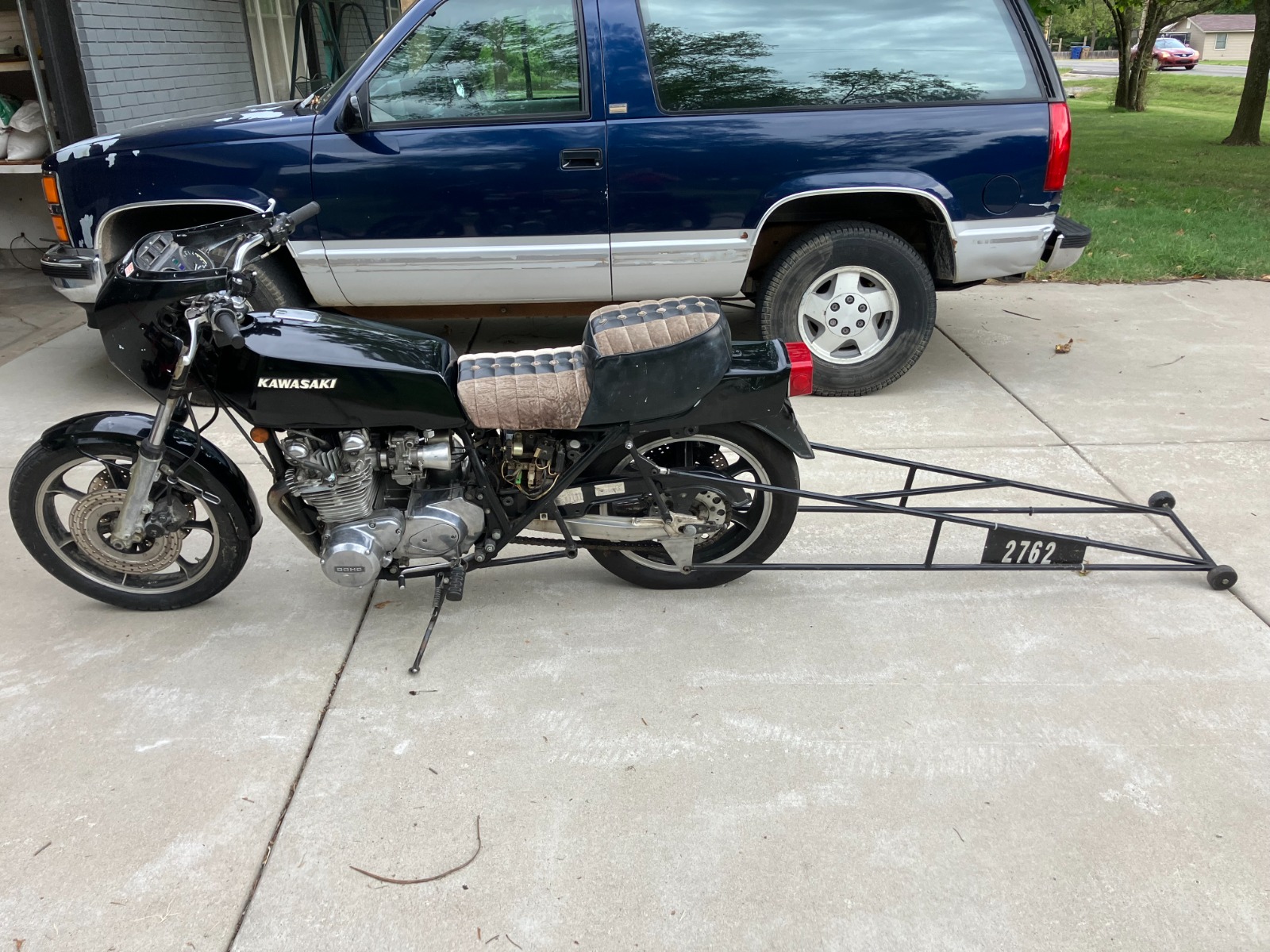 Cool bike. I have a similar project with my dad's Z1. It was also a drag only bike since the early 80s. Similar struts and wheelie bars.