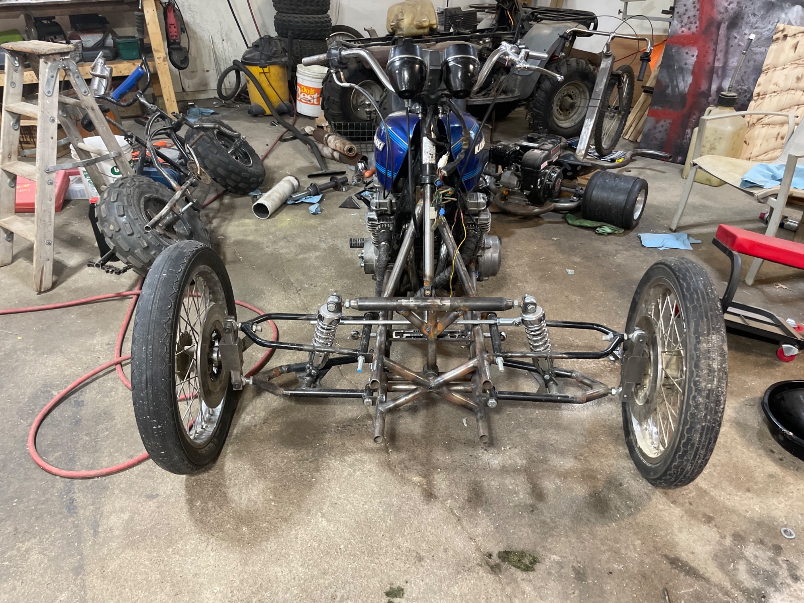 I’ve had kz’s in the past but recently ended up with one in a trade, I’m on the downhill slide of a reverse trike build, it will have a power steering unit from a Hyundai, I am also going to put a 180 series tire on the rear, eventually it will have 180’s on all 3