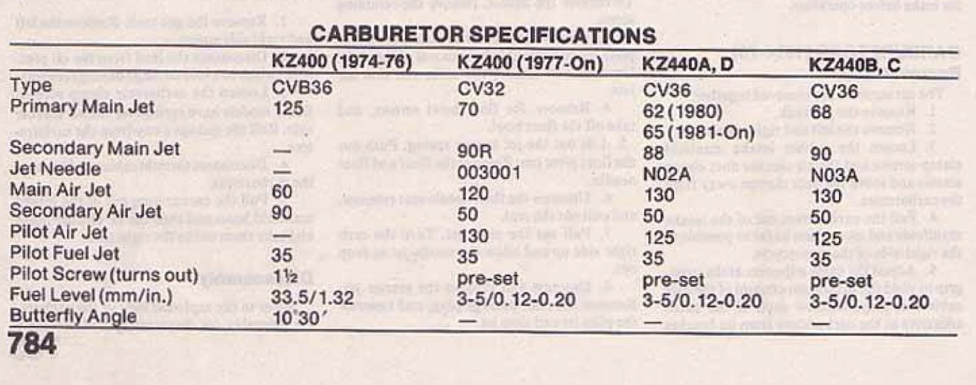 Hey Guys! Needing to get some details on the jet sizing on my bike. Got a 1977 KZ400S but I’m finding SO many conflicting specs on what the stock sizing should be. To be honest, its kind of a non-issue anymore as I put 95s and 70s in it and it’s running great. Just would love to have the correct information for reference! Below are all the screen shots that I found. *NOTE: When I purchased the bike, it was used and trashed and had one 90 and one 92 in it. So I don’t even have a frame of reference.
