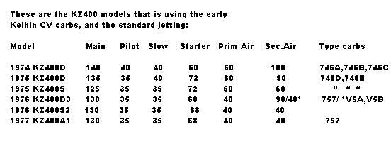 Re: First Post 1977 KZ400S Jet Specs