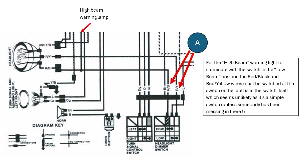 06 Jul 2025 11:40Wires are crossed either at the switch or the headlamp (does the High Beam warning light work when the switch is in the high position ?)Got the original signals installed and wallah! They work and blink. Now I just need to figure out why my low beam is on when the dimmer switch is on high beam and vice versa....