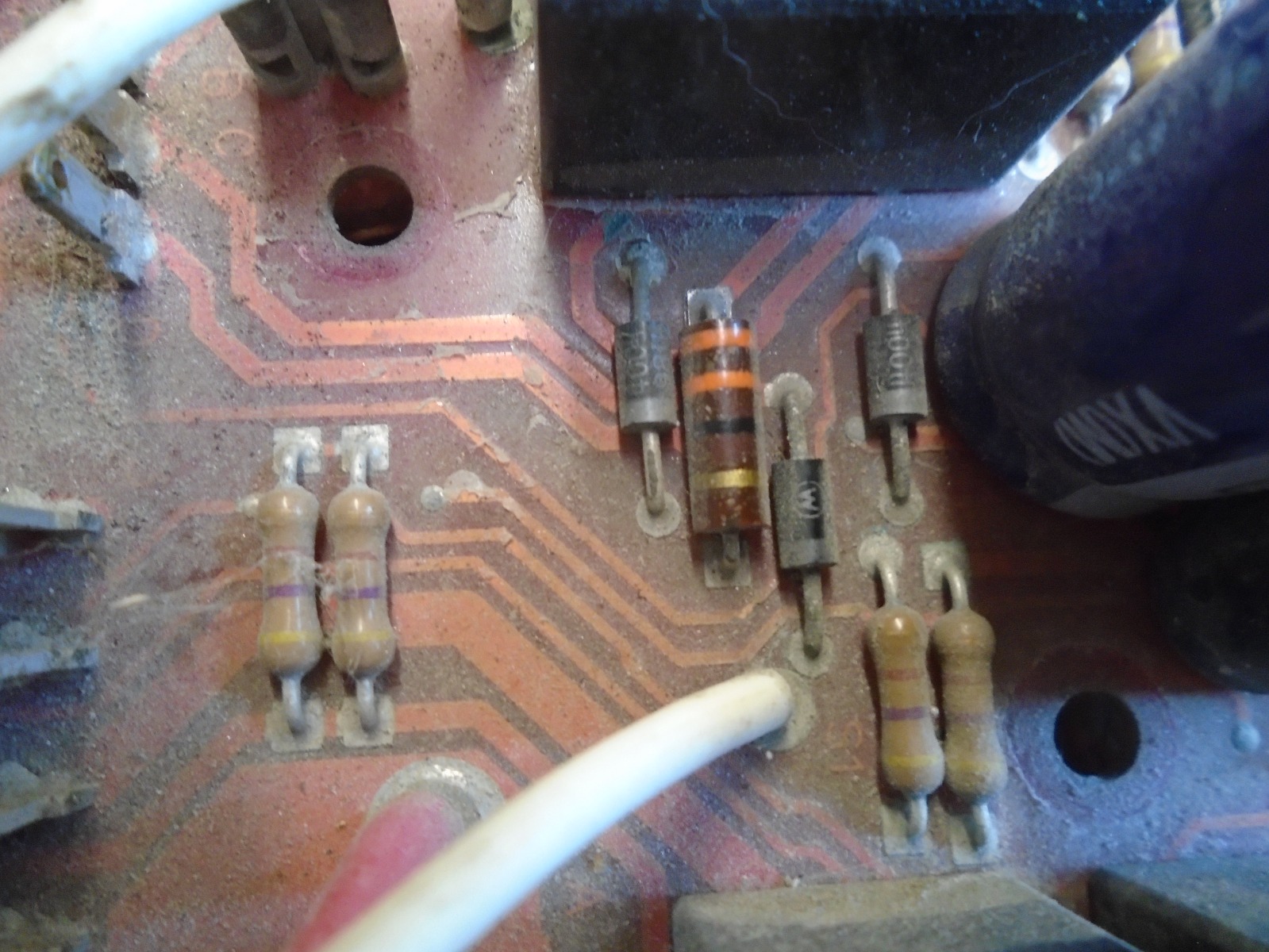 And some photos if they help! I rebuild these John Deere breadboards all the time and..they have the identical dual 12V relays built into each package as the schematic Wookie displayed. They are NEC or NEXEM EP2-3N1ST. About 5bucks a piece. Only difference is You'll have to solder on the diodes and singular resistor once you know it's value. Note the 1/4watt resister with the tolerance band of Gold, that's a 5% one, yours will be similar. Probably if you're clever, reuse the old can and solder accordingly. No One would even know, ha.