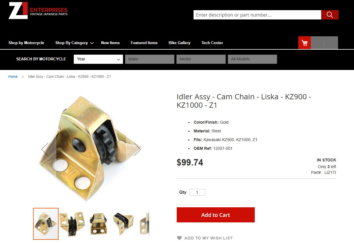 Tensioners, sprockets, roller, and rubber blocks are all available from Z1E also.  The Liska billet sprockets, tensioner, and top idler make a little more noise than the rubber damped originals but they're bulletproof.