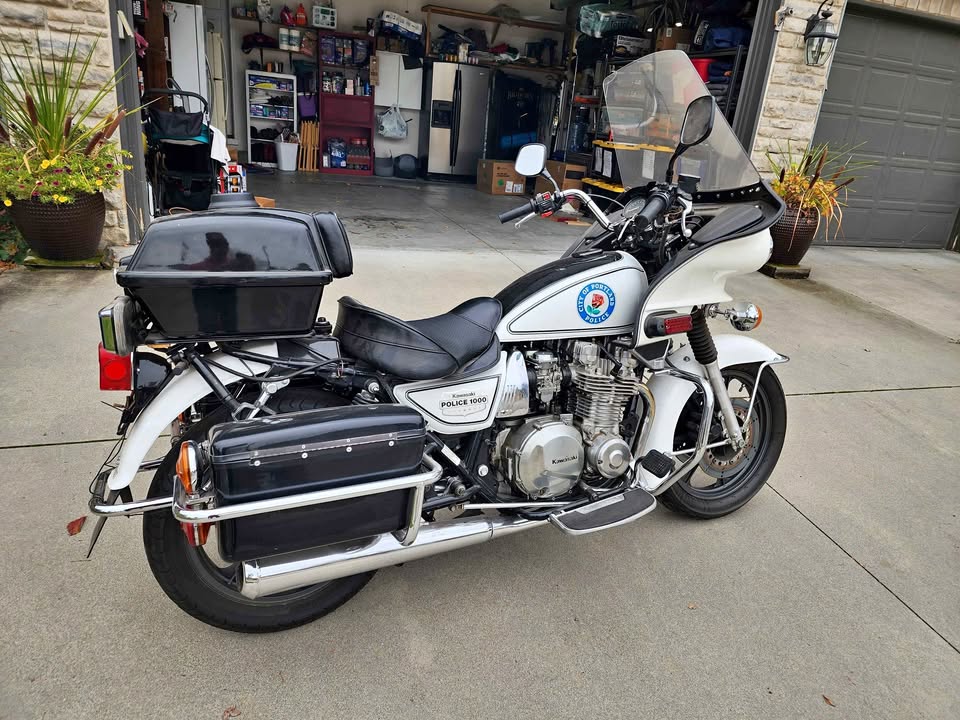 The most recent purchase is a 2000 KZ1000P. I am a retired police officer. I had always wanted to be paid to ride. Unfortunately, I never had the opportunity. I was cruising through FB marketplace one day and saw a patrol KZ for sale. It appeared to be in good shape, and it was. I purchased it from the owner, who BTW, was the officer who rode the bike during his duties. He had bought it at auction, after he retired. Sadly, he lost interest in it and sold it. I have wired up all the emergency lights on it and am now trying to figure out how to wire up the siren. The carbs need work, probably just a good cleaning and balance.