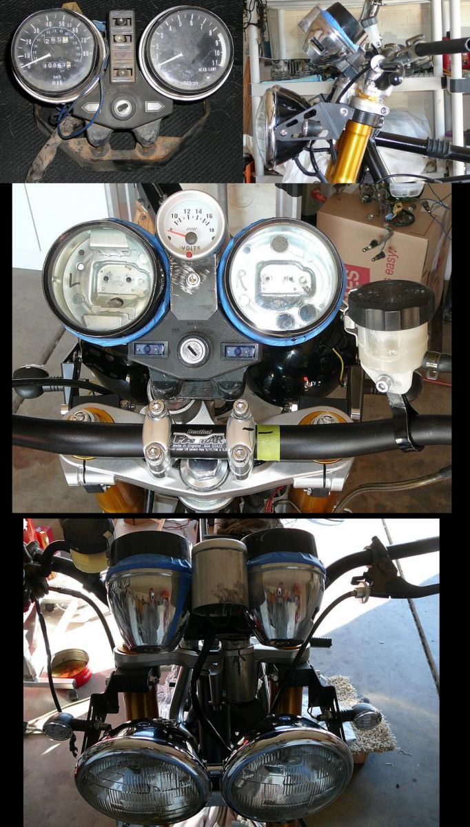 One being the original controls are old, weak conductivity, bulky on the bars etc.... With the ZX636 brake reservoir, leaves little room for right hand control. Yes I realize I can get new controls but I'd like to clean all this up just the same and I definitely want the AF/R gauge included...