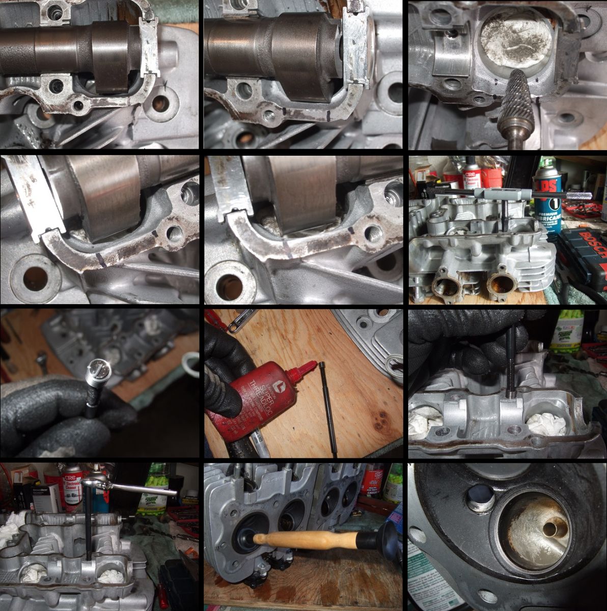 GPZ 1100 journal touch ups... Since the cam cap bolt threads where shit, inserted new Heli-Coil threads! Lapped the valve seats as well...