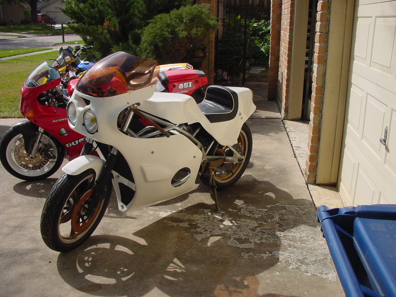 Actually not a brand new kit, it has been setting in my garage and another persons garage for 30 years but all the original stuff from the kit is there. The tires do not even show any wear but of course will be replaced. From what I was told it was put together for an article then stripped and has set ever since. Picked it up in a garage sale along with a rolling chassis for a Bimota KB1 cheap from what I am hearing. I worked with the guy for a number of years and his wife wanted the garage cleaned out. We had discussed the sale for a number of years but the price was too high and when I heard that the wife wanted the garage cleaned out it was time to make a deal. The frame has some rust showing through so once the engine arrives in a month or so I will fit things up then strip the frame and have it nickel plated and go from there. The engine setting in the garage is a B4 model and this bike uses a J model engine. May just use that engine in the KB1 after this project.