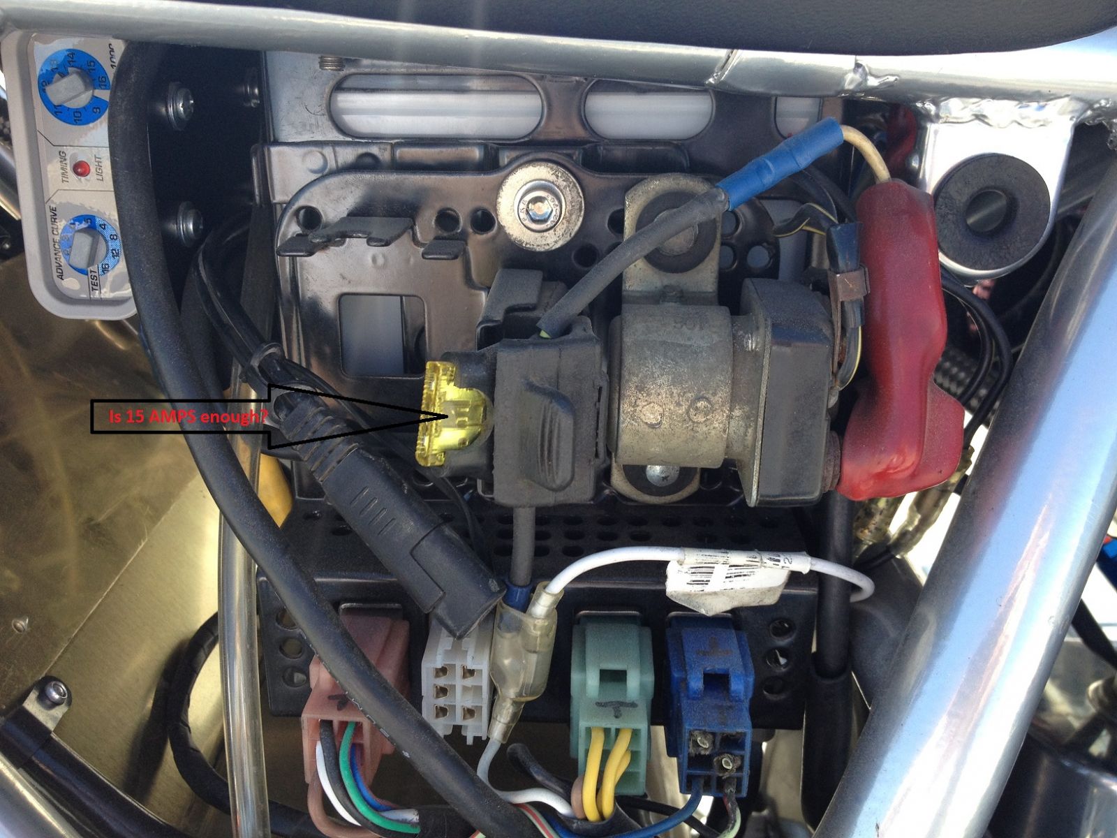 Thank you thank you. The 20 amp ting will make me sleep better. the fuse blew after the first hard pull on the throttle, so if it supposed to be twenty amps, there may have just been a little too much juice for the 15 amp.