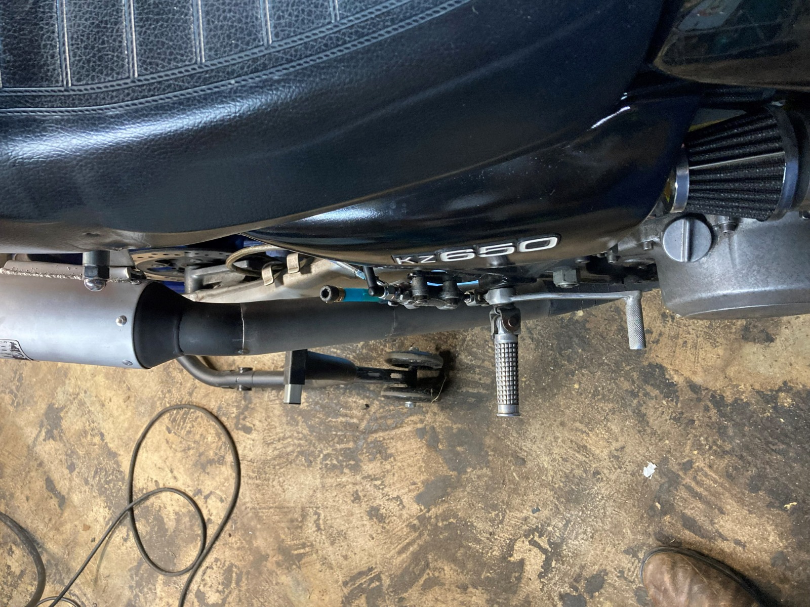 Changed the footrest location to go back to GP shift style of gear selection for more positive upshifts, and I think it will be more comfortable. I had recently received a big pile of oil cooled GSXR parts and stuff so I am picking through that as well for changes to this old girl.