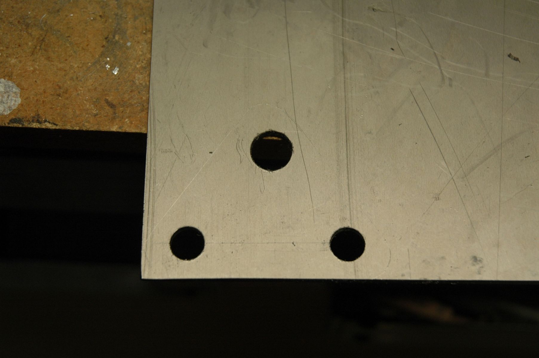 Incidentally, cutting the titanium was SIGNIFIGANTLY more difficult than drilling it! I started with a jig saw, and that didn't do much. Then I tried a fresh hacksaw blade, and that was even less effective. I think I spent 5 minutes and made a 1/4" notch in the Ti plate
