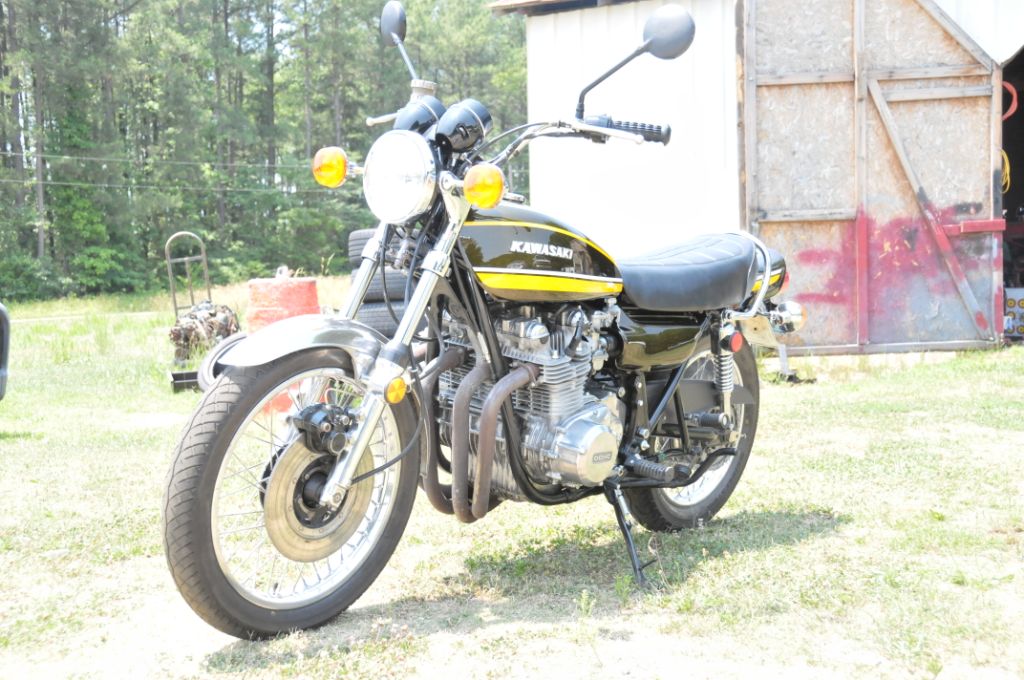 As I mentioned earlier, got the bike with no title for $350. After searching a title, I found 74 Z1-A title. So I decided to get 74 Green/yellow body set on. The frame is replacement frame without VIN stamp on it. Not correctly restored but it is a keeper.