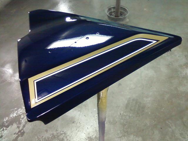 painter is restoring the body to stock MKII in the luminous blue and decals right now....all new emblems sitting here to go on...