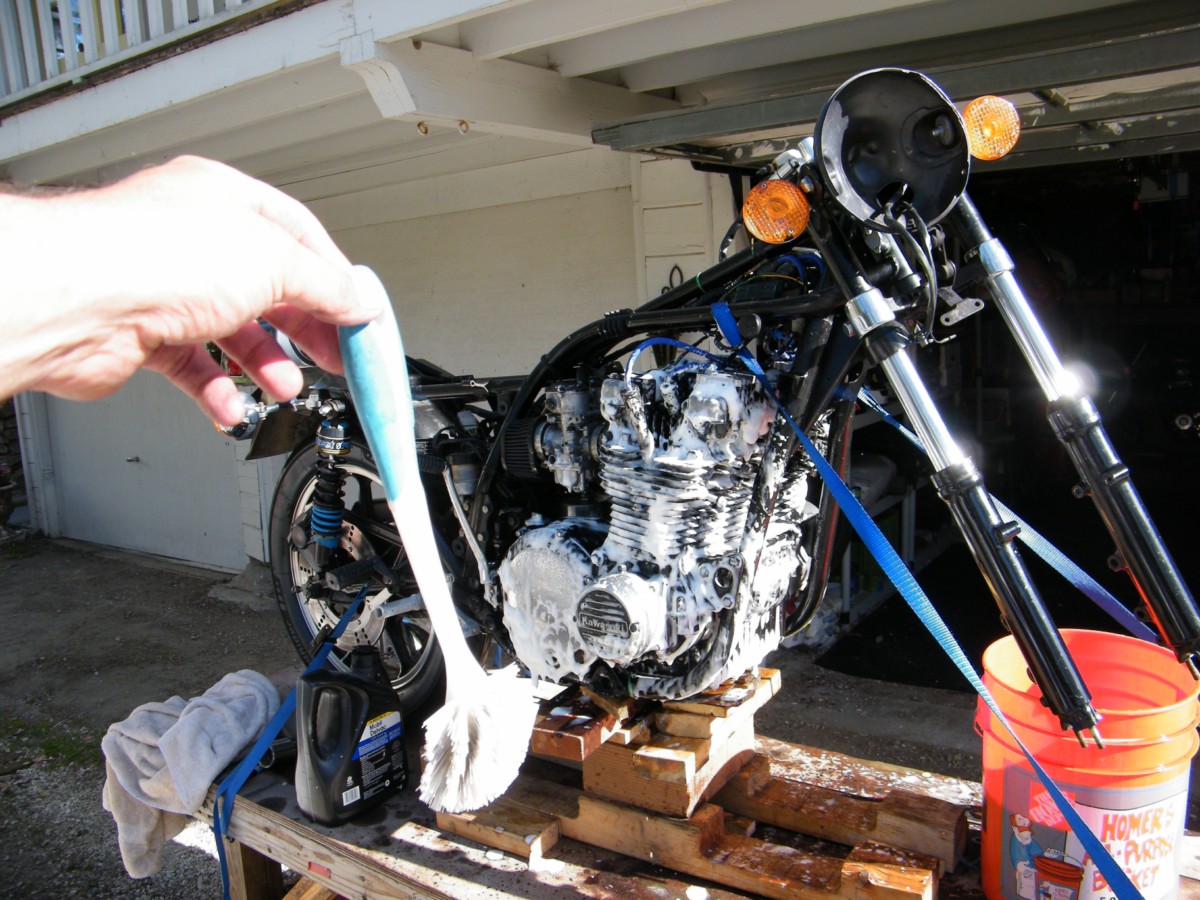 new oil ....new springs...clean and polish..newer ,no dent fender....it is pretty shitty in there where no cleaning could be done much over the yrs,behind the head light and fork eras..under the steering neck ect.....lot of stuff is pretty bad up close...making notes for next years list and tear down and trying to polish up what i can for now