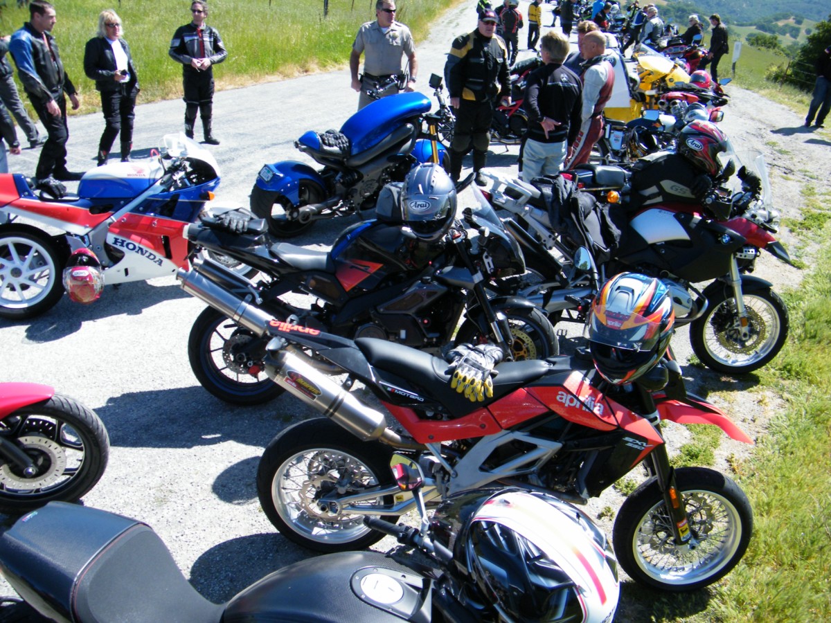 what a bummer.....the morning meet up was cool..i took some pics/vids.....then they took us out a rode that i wont ride by myself because of the potholes and cattle guards and the only cars oncoming on this 8 foot wide shit road were bumpkin meth heads in rolling felony's...way out into un maintained country roads.....then more on this stupid beat the bike loop to this boys ranch where we sat around for 20 minutes while the little gangbangers walked around the bikes and the staff from the ride sucked face with the ranch staff and left us just standing there with our thumbs up our ass....then they saddle up and take us through agricultural work roads that are covered in dirt and truck dips and potholes..(broke the speedo on my buddies 1200 bmw dual sport ) that were so bad i had to stand up on the pegs for some of the dips after seeing the bikes in front go sailing..i was actually surprised no one was hurt