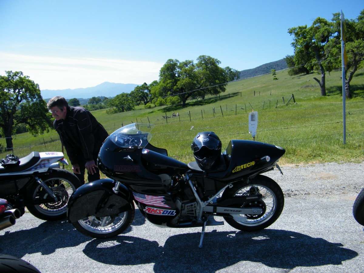 in hibdsight i would have been better off to blow off steam than to have ran my mouth...i was heated though and had waitied a long time to be here riding this model bike on this track....there is a history with the MKII and seca and i am sure other folks felt brushed aside as well...there were soooo many bikes...amy made a movie of us finally arriving in the pits and it will show(later i'll post some clips) how many folks got brushed aside and the energy we had after finaly getting to the track...we rode in like some biker film form the 60's....